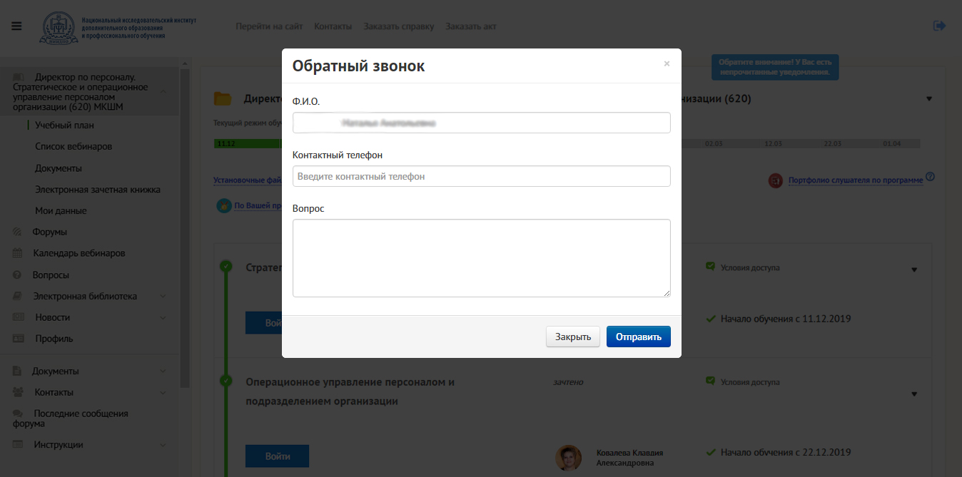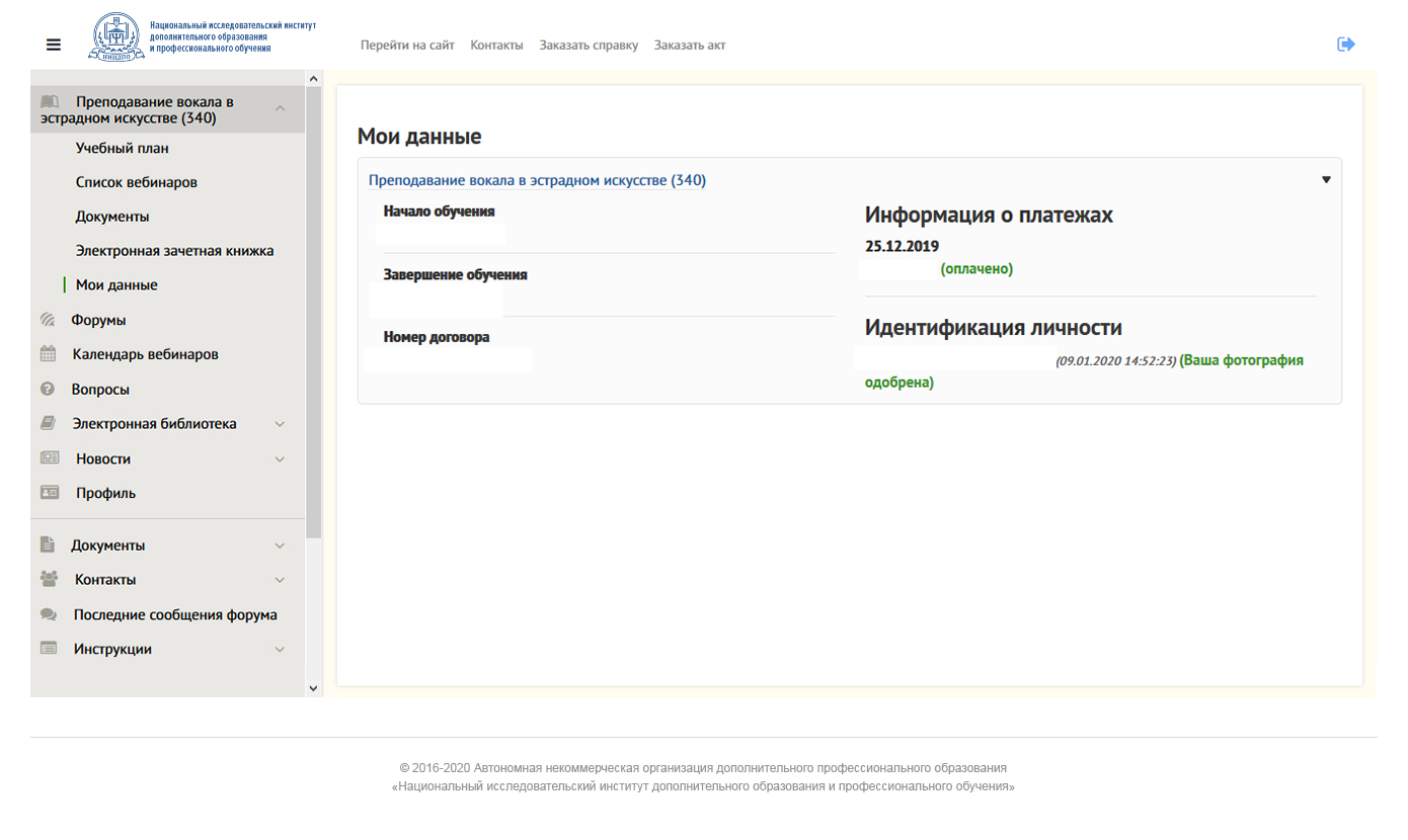 Смотрите процесс обучения в личном кабинете