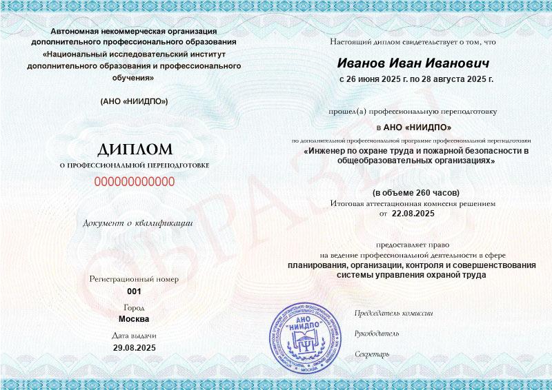 Студент, желающий поступить в АНО «НИИДПО», должен предоставить справку из образовательной организации. Независимо от срока окончания обучения по программе дополнительного образования, диплом о профпереподготовке выдаётся только после предъявления документа о получении среднего профессионального или высшего образования.