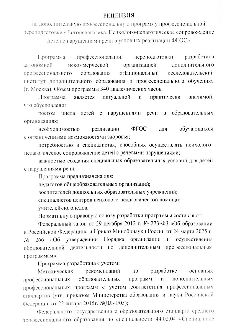 Я обучалась по специальности «Логопедагогика. Психолого-педагогическое сопровождение детей с нарушениями речи в условиях реализации ФГОС». Моё обучение длилось 3 месяца (340 часов). Хочу выразить искреннюю признательность вашему учебному заведению за предоставленную возможность пройти очередной курс повышения квалификации. Это отличная возможность получить новые знания без отрыва от дома и работы. Учебный процесс поставлен очень грамотно, блоки лекций и дополнительные материалы содержат ответы на все вопросы последующего тестирования. Желаю дальнейшего развития и процветания! Обязательно порекомендую своим коллегам обучение в вашем учебном заведении! Я получил(а) много новых знаний и навыков благодаря этому обучению. Я получила много новой информации, и потребуется время на обработку такой насыщенной программы. Хочу пожелать новым слушателям быть активными участниками вебинаров — это вам пригодится в вашей работе! Спасибо большое за оперативность обратной связи с кураторами!