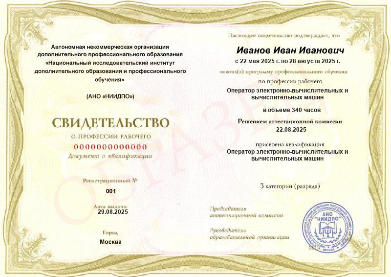 • Квалификация: Оператор электронно-вычислительных и вычислительных машин