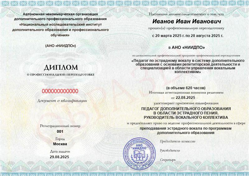 Обзор программы профессиональной переподготовки «Педагог по эстрадному вокалу в системе дополнительного образования с основами репетиторской деятельности и специализацией в области управления вокальным коллективом» с присвоением квалификации «Педагог дополнительного образования в области эстрадного пения. Руководитель вокального коллектива» с дополнительной квалификацией «Репетитор по вокалу»