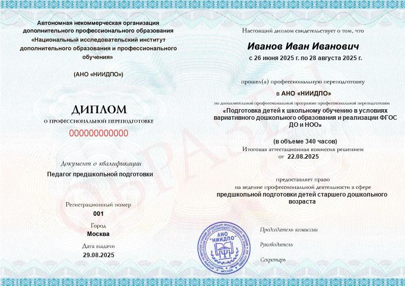 Обзор программы профессиональной переподготовки «Подготовка детей к школьному обучению в условиях вариативного дошкольного образования и реализации ФГОС ДО и НОО» с присвоением квалификации «ПЕДАГОГ ПРЕДШКОЛЬНОЙ ПОДГОТОВКИ»