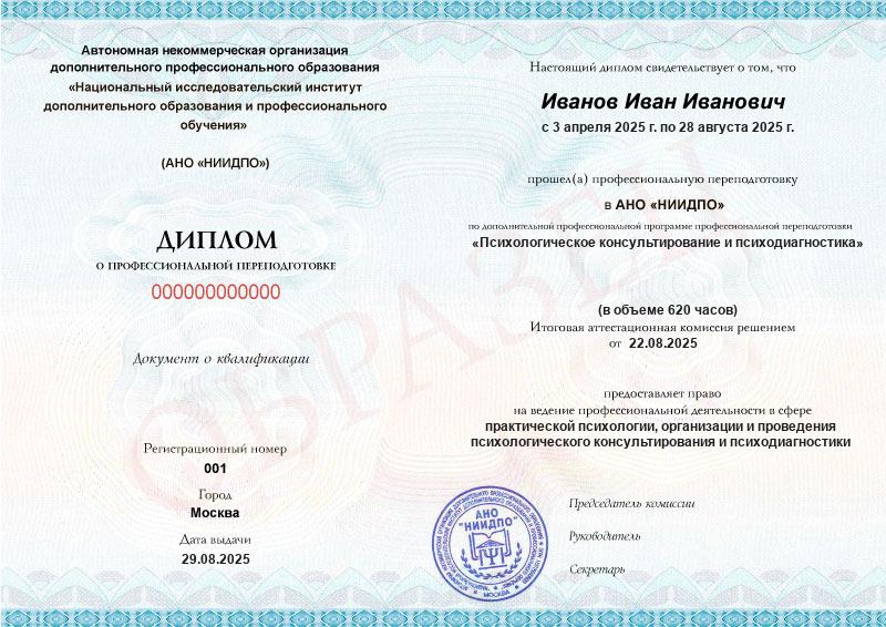 Диплом о профпереподготовке московского института