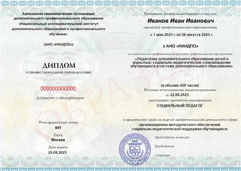 - Квалификация: СОЦИАЛЬНЫЙ ПЕДАГОГ