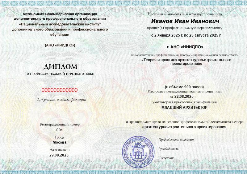 - Квалификация: Младший архитектор