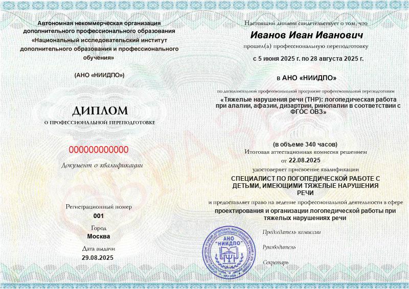 Обзор программы профессиональной переподготовки «Тяжелые нарушения речи (ТНР): логопедическая работа при алалии, афазии, дизартрии, ринолалии в соответствии с ФГОС ОВЗ» с присвоением квалификации «Специалист по логопедической работе с детьми, имеющими тяжелые нарушения речи»