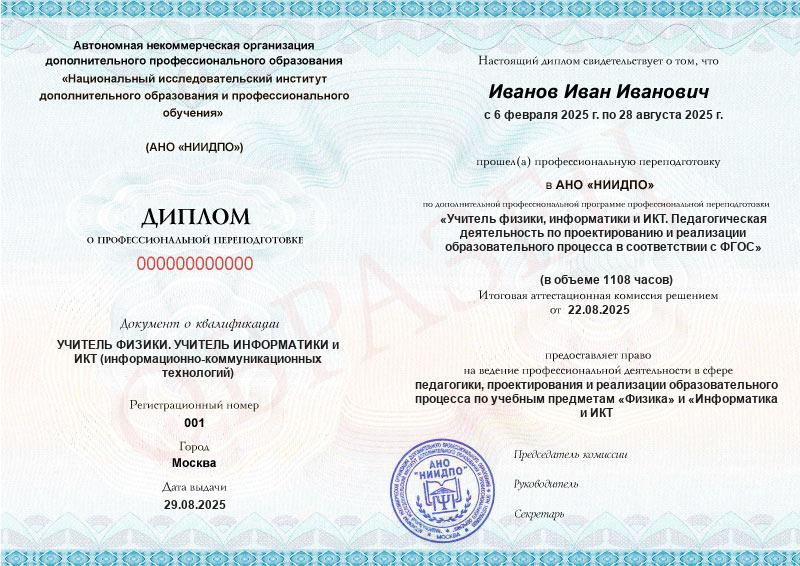 Студент, желающий поступить в АНО «НИИДПО», должен предоставить справку из образовательной организации. Независимо от срока окончания обучения по программе дополнительного образования, диплом о профпереподготовке выдаётся только после предъявления документа о получении среднего профессионального или высшего образования.