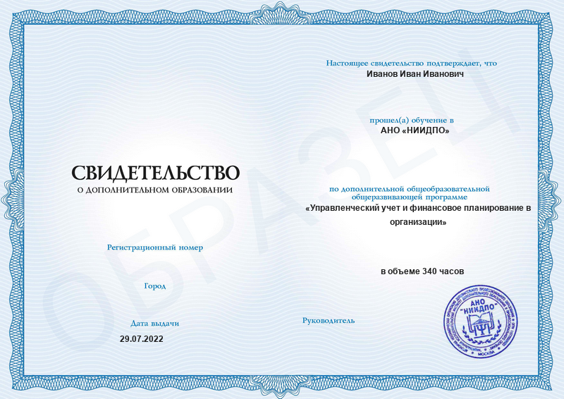 Да, документы оформляются на бланках с защитой от подделок, заполняются на русском языке, в них ставится печать АНО «НИИДПО».
